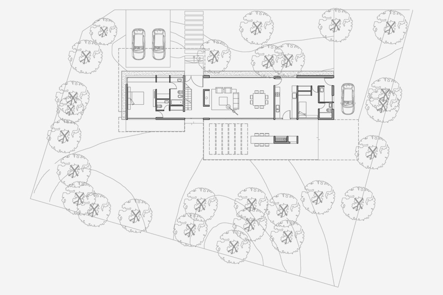 CARILÓ Cariló Provincia de Buenos Aires Vivienda unifamiliar Año 2007 Cariló Planta baja Planta alta Planta techos Vista frente Vista lateral Vista lateral Fachada contrafrente Corte longitudinal Corte longitudinal
